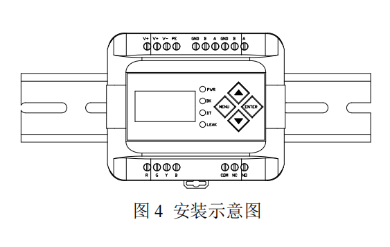 請將控制器安裝于牢固的室內(nèi)采集箱或機柜等易于維護檢查的場所,控制器扣裝于標(biāo)準(zhǔn)的 DIN35mm導(dǎo)軌上。設(shè)備安裝時應(yīng)注意以下事項: